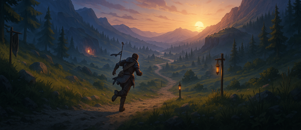 Phase A – 30 min: Camp Waystone route, 2 side quests that overlap, 1 mini-event, return turn-ins.